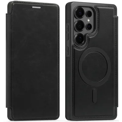 Coque portefeuille Phonesta Luxury Leather avec MagSafe pour Samsung Galaxy S25 Ultra - Noir