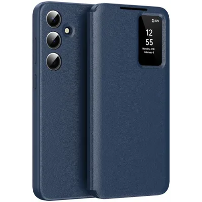 • Coque portefeuille Phonesta Smart Window pour Samsung Galaxy S25 - Bleu foncé