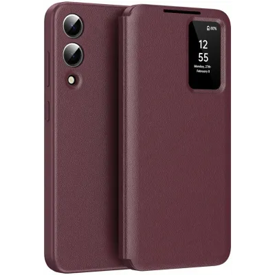 • Coque portefeuille Phonesta Smart Window pour Samsung Galaxy S25 Edge - Bordeaux