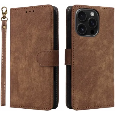 Coque portefeuille Phonesta Vintage Skin pour Apple iPhone 16 Pro - Marron