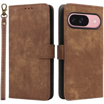 Coque portefeuille Phonesta Vintage Skin pour Google Pixel 9 / 9 Pro - Marron