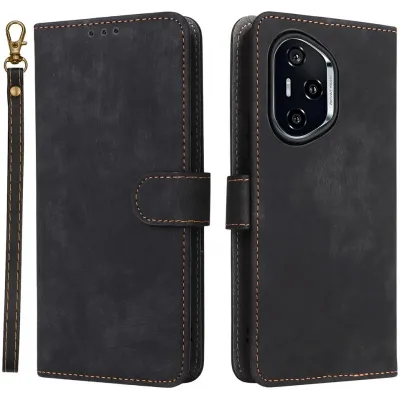 Coque portefeuille Phonesta Vintage Skin pour HONOR 400 - Noir