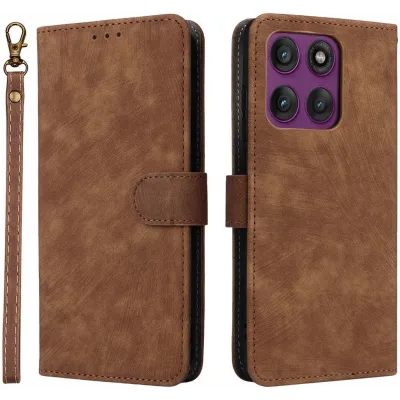 • Coque portefeuille Phonesta Vintage Skin pour Motorola Edge 60 Pro - Marron