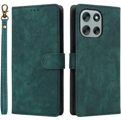 La coque portefeuille Phonesta Vintage Skin Book est un étui élégant et pratique pour votre Motorola Moto G56. Cette coque est fabriquée en cuir polyuréthane (PU) de haute qualité et en polyuréthane thermoplastique (TPU), offrant une prise en main confortable et une longue durée de vie. La couleur vert donne à la coque une apparence élégante, parfaite pour une utilisation quotidienne comme pour des occasions spéciales. Avec sa fermeture magnétique, tout reste bien sécurisé, tandis que le cordon inclus permet de garder votre téléphone à portée de main.