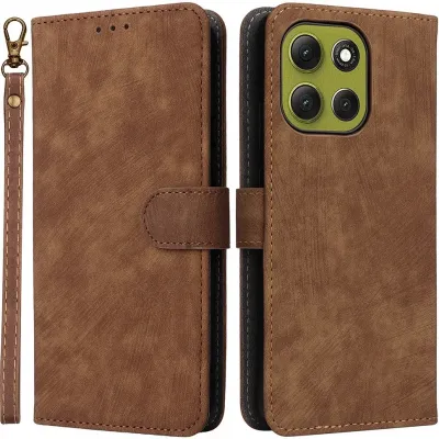 • Coque portefeuille Phonesta Vintage Skin pour Motorola Moto G86 Power - Marron