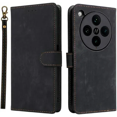 Coque portefeuille Phonesta Vintage Skin pour Oppo Find X8 Pro - Noir