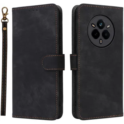 Coque portefeuille Phonesta Vintage Skin pour Realme 14 Pro - Noir