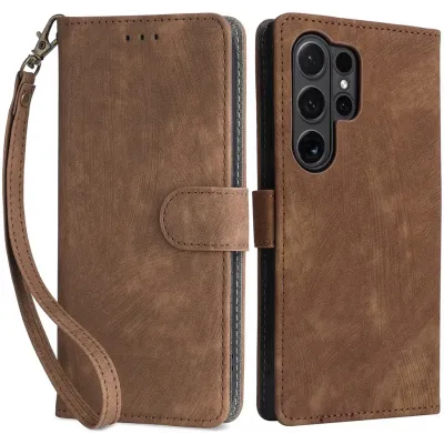 Coque portefeuille Phonesta Vintage Skin pour Samsung Galaxy S24 Ultra - Marron