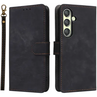 Coque portefeuille Phonesta Leather Vertical Flip pour Samsung Galaxy S25 Plus/S24 Plus - Noir