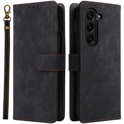 • Coque portefeuille Phonesta Vintage Skin pour Samsung Galaxy Z Fold 6 - Noir