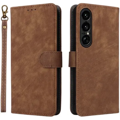 Coque portefeuille Phonesta Vintage Skin pour Sony Xperia 1 VII - Marron