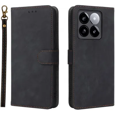 Coque portefeuille Phonesta Leather Vertical Flip pour Xiaomi 14T - Noir