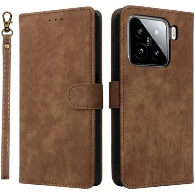 Coque portefeuille Phonesta Vintage Skin pour Xiaomi 15 - Marron