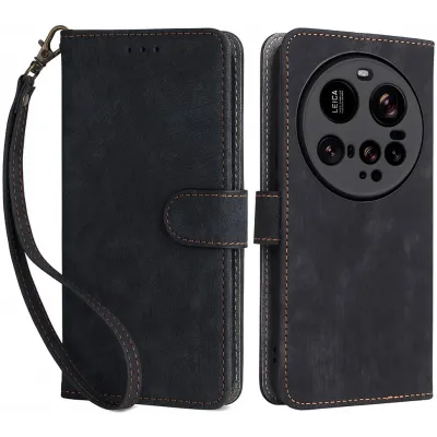 Coque portefeuille Phonesta Vintage Skin pour Xiaomi 15 Ultra - Noir